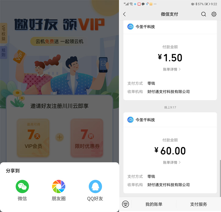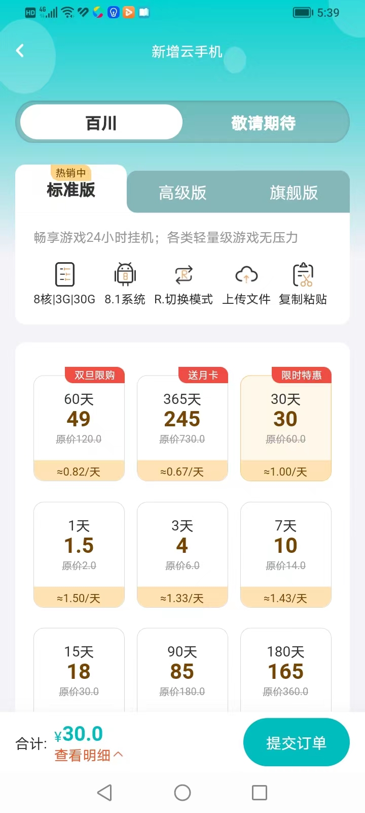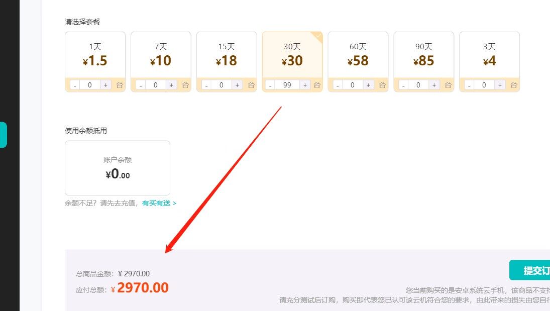 9点多的时候,我又果断出手买了两张月卡,共花费60大洋,这个价格跟其他的云手机比还是有很大的优势的,现在别人都是卖36至38元,这种良心价去哪里找呢?