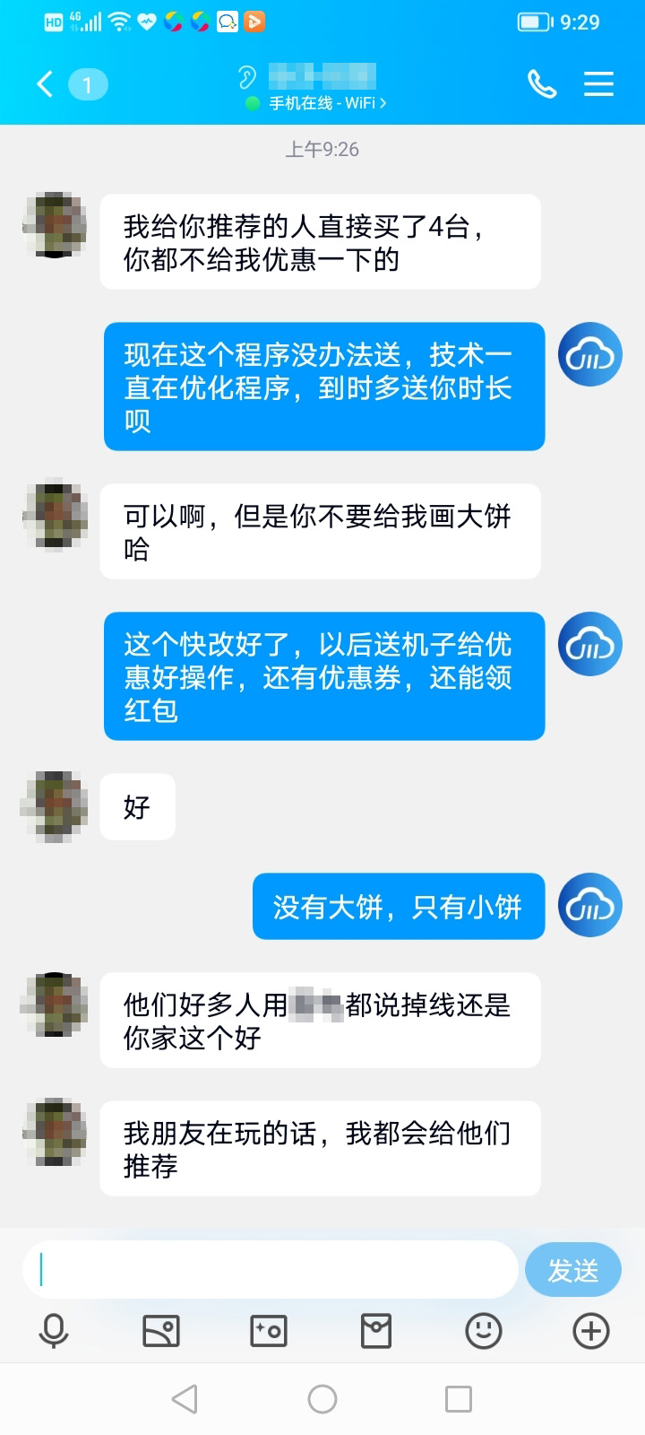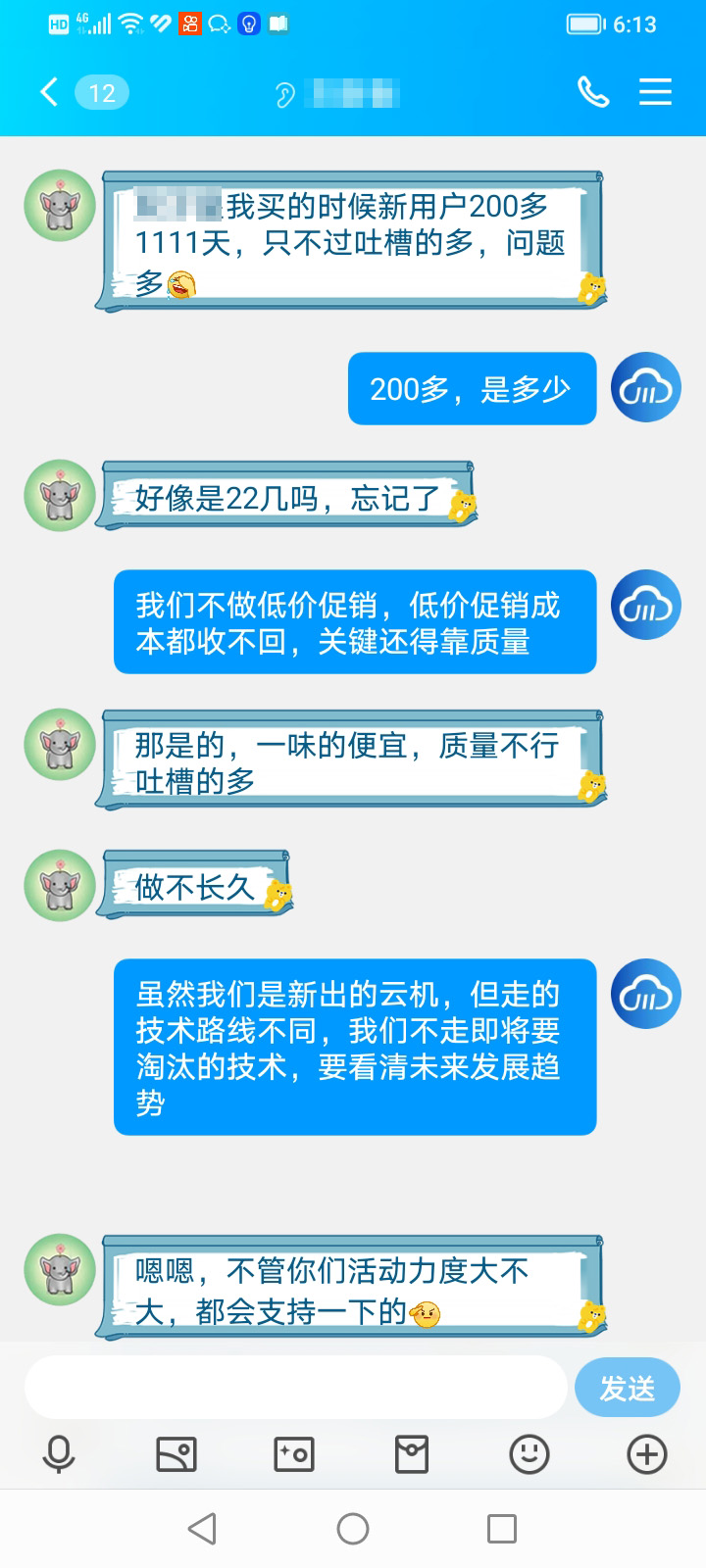 其实能优惠一点也是可以的,我也没有说一定要优惠一点,只要云手机用得顺手,用得舒服,我还是愿意买单的。我看别人对川川云的评价还可以,我也相信他们也不会那么拉垮,做一款垃圾产品出来,迟早会被大家遗弃。